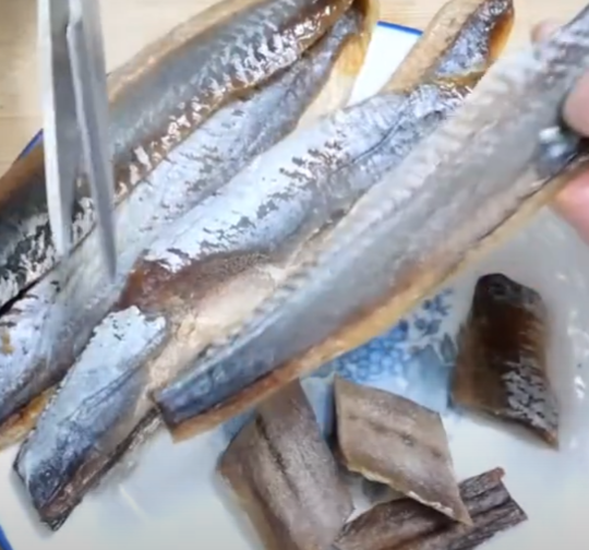 1) 과메기가 너무 큰 경우 먹기 좋은 크기로 잘라서 준비합니다.