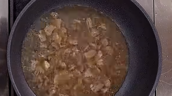 2. 떡국이 물에서 불려지는 동안 다음 단계로 소고기를 볶아야 합니다. 프라이팬에 참기름, 식용유를 적당량으로 두르고 소고기를 넣고 달달 볶아줍니다. 그리고 고기가 잘 볶아지면 준비된 물 500ml를 넣어줍니다.