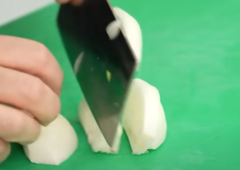 3. 무는 소고기 무국에 넣는 크기로 사방2.5cm, 두께0.5cm로 나박썰기 합니다. 양파는 두께 1cm로 굵게 채 썰어서 준비합니다. 애호박은 길게 반으로 가른후에 두께0.5cm로 편 썰어 줍니다. 대파는 길이4cm로 썰고 마지막으로 청양고추는 두께0.5cm로 어슷썰기 해서 준비합니다. 백종원 꽃게탕 맛있게 끓이는 방법의 꿀팁은 무을 넣어주는 것입니다. 모두 아시는것과 같이 무가 시원한 맛을 책임지는 야채이기 때문입니다.