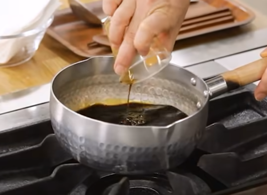 2. 준비된 재료를 넣은 냄비의 소스가 끓어 오르면 불을 꺼야합니다. 그리고 한 김 날린 후에 분량의 식초를 넣어 잘 섞어 줍니다.