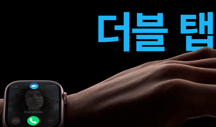 한 손으로 애플워치 9을 손쉽게 컨트롤할 수 있는 더블 탭 기능이 있습니다. 그리고제스처 기능이 개선되면서 이전 모델인 애플워치 8보다 사용이 더 간편해졌는데요. 또한 애플워치 9을 착용한 상황에서 엄지와 검지를 두번만 탭하면 각종 기능으로 전환이 쉬워졌어요. 양손의 사용이 쉽지 않을 때에도 알림 열기, 메시지 확인, 전화 받기, 음악 재생은 물론 일시 정지 등의 기능을 이용하기 쉽게 된거에요.