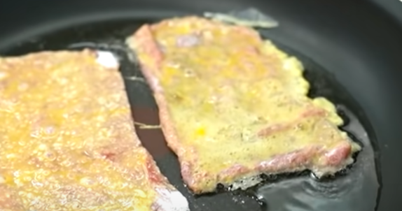 8) 계란물만 익으면 바로 먹을 수 있습니다. 이렇게 하면 육전이 완성입니다.