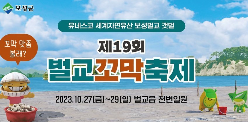 꼬막하면 바로 생각나는 지역이 바로 벌교입니다. 그만큼 드넓은 갯벌에서 생산되는 꼬막이 유명한 곳이며 임금님 수랏상에 진상했던 곳이기도 합니다. 천혜의 자연환경으로 인해육질이 쫄깃하고 맛있는 꼬막이 생산되는 벌교에서 지역 축제가 개최됩니다. 유네스코 세계자연유산으로 지정된 보성 벌교갯벌에서 지역 축제를 즐길 수 있습니다. 11월 축제 가볼만한 곳 벌교 꼬막축제입니다.
